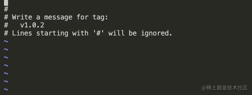 git tag -a v1.0.0 // 该命令会创建一个名为 v1.0.0的标签,并且git会打开你的编辑器,
