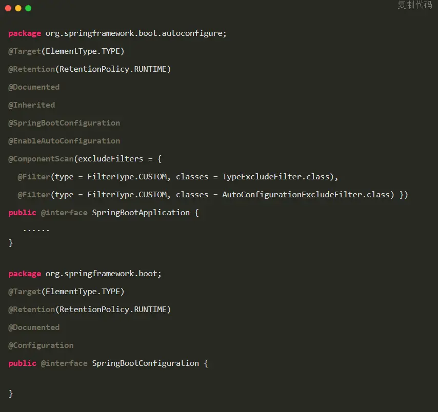 这里先单独拎出@SpringBootApplication 注解说一下,虽然我们一般不会主动去使用它。