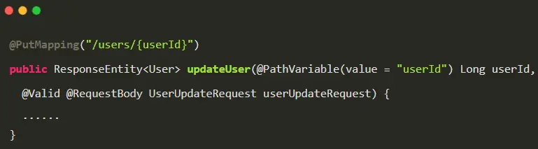 @PutMapping("/users/{userId}") 等价于@RequestMapping(value="/users/{userId}",method=RequestMethod.PUT)