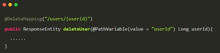 @DeleteMapping("/users/{userId}")等价于@RequestMapping(value="/users/{userId}",method=RequestMethod.DELETE)