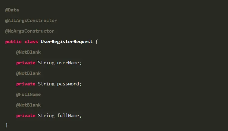 这样我们的后端就可以直接把 json 格式的数据映射到我们的 UserRegisterRequest 类上。