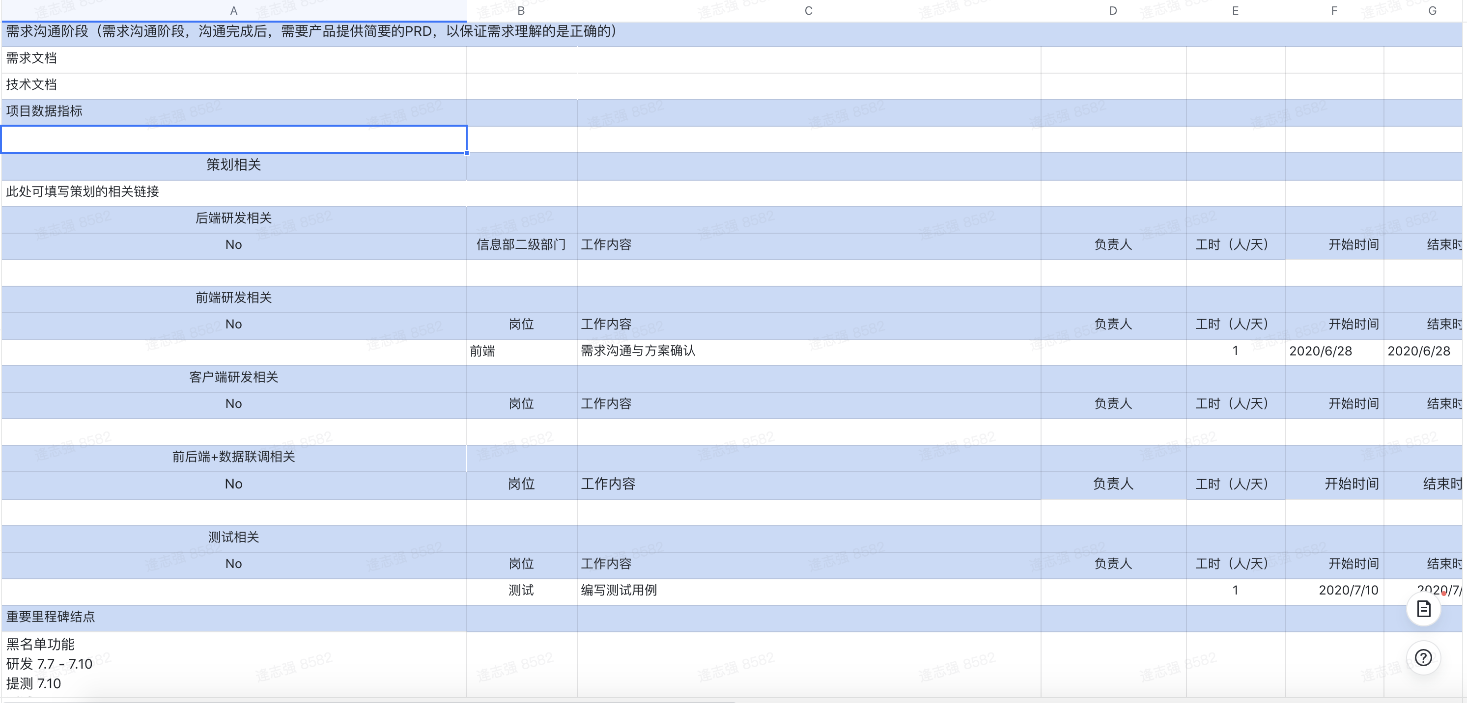 里程碑:关键时间点,开始开发时间、提测时间、上线时间