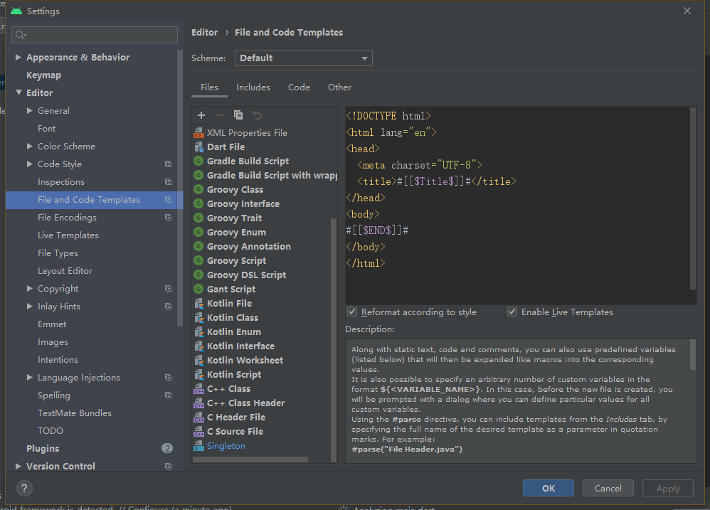 Flutter 的代码模板是通过 Velocity 模板引擎 来实现的,更详细的资料可以参考这里。