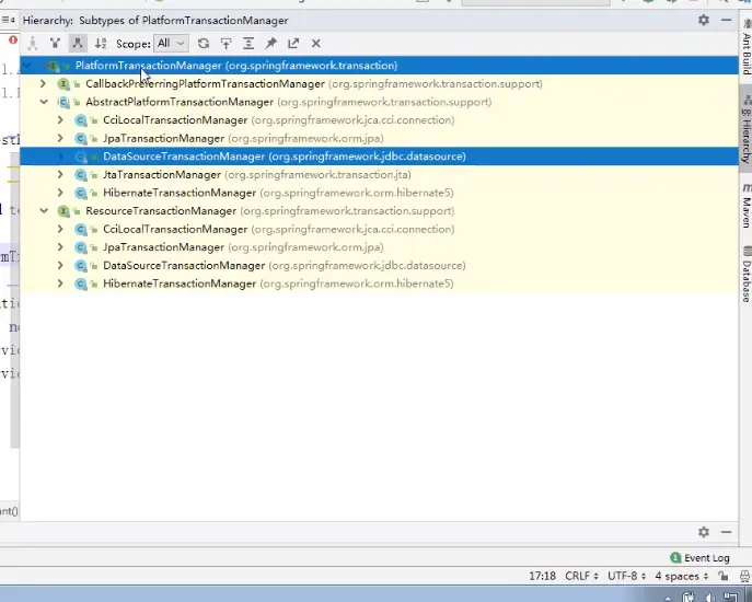 (1)提供一个接口,代表事务管理器,这个接口针对不同的框架提供不同的实现类