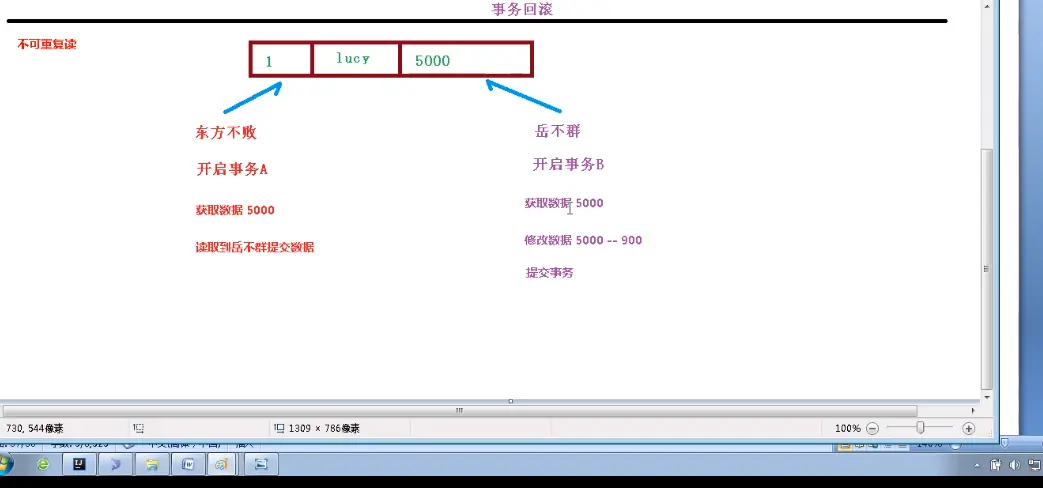 脏读 未提交的事务读取到了另一个未提交的事务的数据,a事务读到了另一个事务回滚前的数据