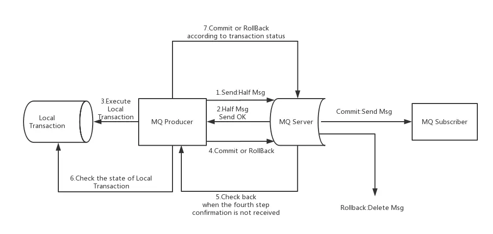 RocketMQ解决此问题的方法分为两个阶段:prepared阶段和确认阶段(其中确认阶段分为Commit和Rollback,取决于事务是否执行成功)。