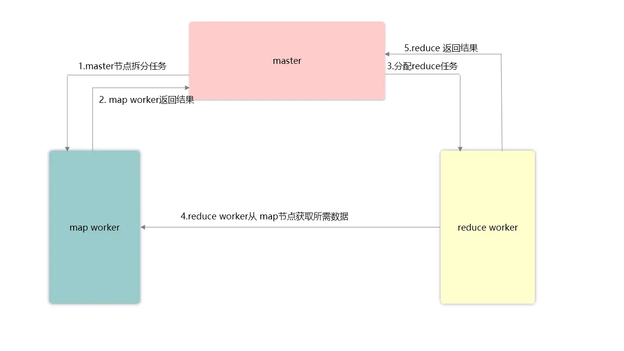 MR的运行方式完美的体现了分治思想: 首先,master节点会将文件拆分成m份(这里的m份远远大于map worker的数量),然后协调worker节点,将任务分配。map节点会对输入的文件进行处理,处理完成之后,会根据运行MR任务时预设的节点数目,将文件分成R份(这里的R为reduce worker的数目,通常map节点数目会是reduce节点的4倍左右),同时,map节点会将结果发送给master节点,master节点会保存map节点的地址,并且开始运行 reduce 任务,各个reduce节点根据自己的节点从map节点获取自己需要的数据进行处理。