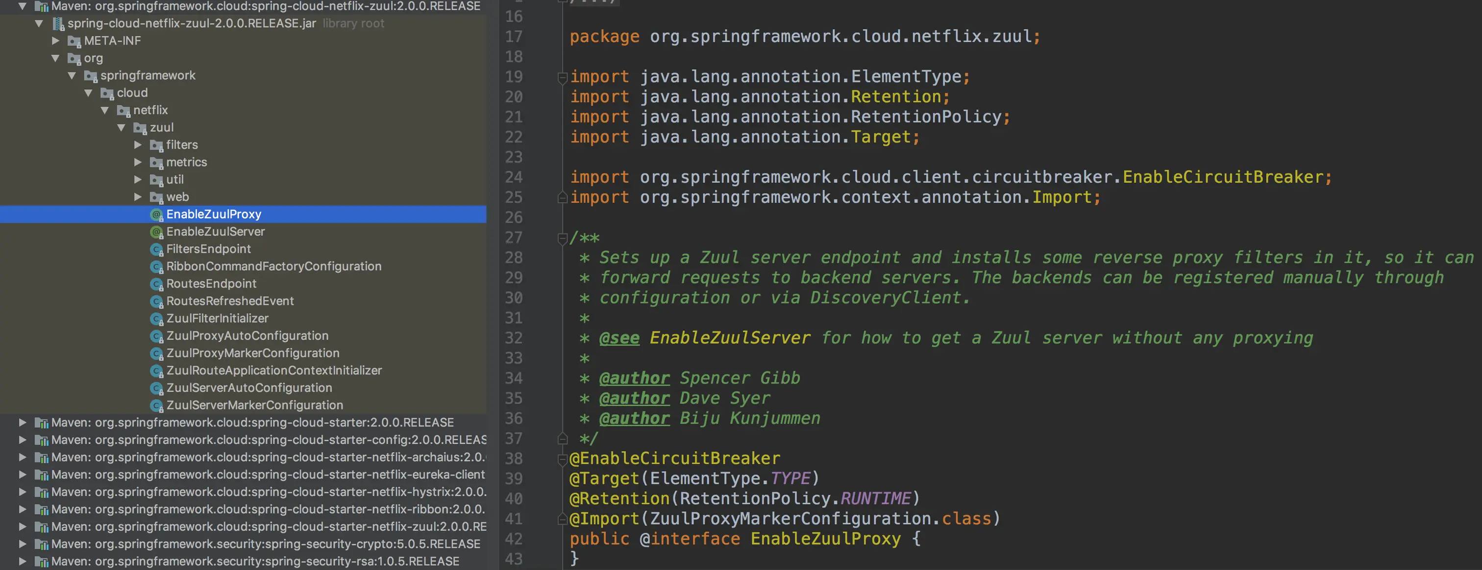 要启用它,使用@EnableZuulProxy注释Spring Boot主类,并将本地调用转发到相应的服务