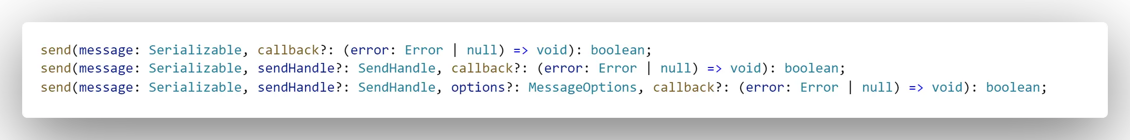 类似地,NodeJS中也提供方便的接口以进行线程间的通信