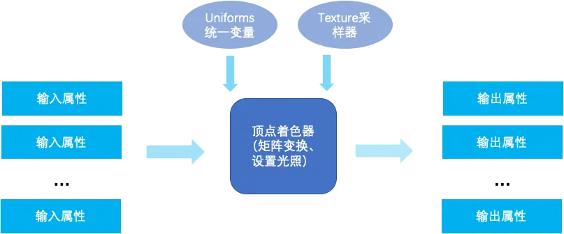 - Attribute:参数属性传递,只能将数据传递给顶点着色器,再通过顶点着色器间接的传递给片元着色器。