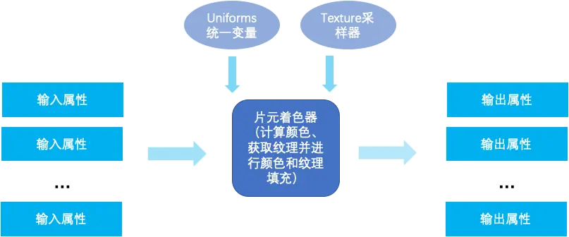 3、片元着色器接收到数据后,进行颜色计算和纹理获取,并进行纹理和颜色的填充