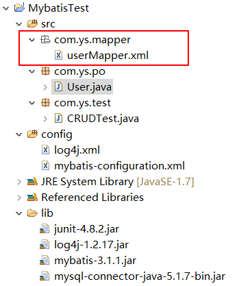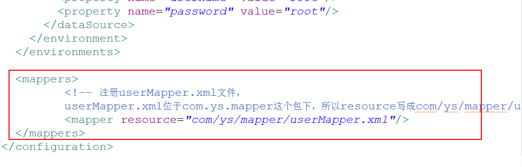 <mapper resource="com/ys/mapper/userMapper.xml"/>