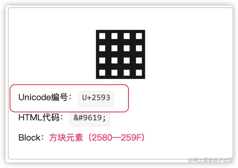 ps:推荐一个网站,可以根据符号搜对应的 Unicode 码:unicode.yunser.com/unicode