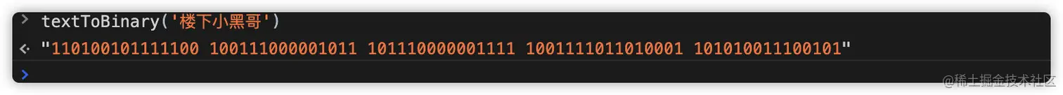 const binaryUsername = textToBinary(username);