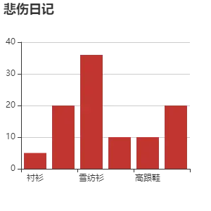 data: ["衬衫", "羊毛衫", "雪纺衫", "裤子", "高跟鞋", "袜子"],