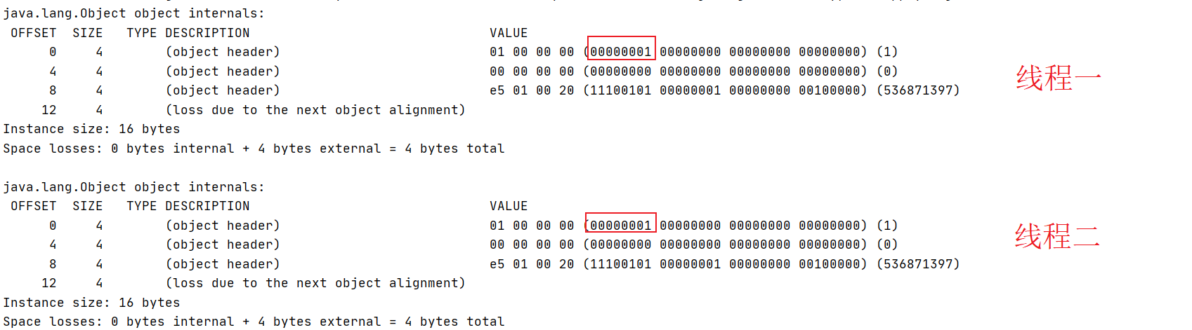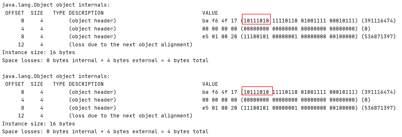 System.out.println(ClassLayout.parseInstance(object).toPrintable());//此时处于无锁态
