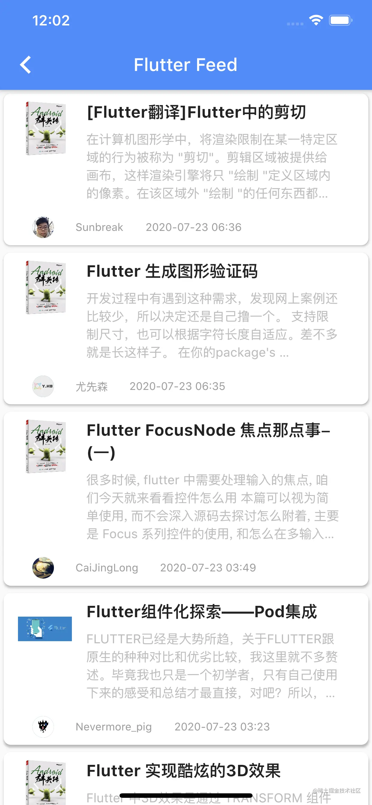 Flutter Dojo经过两个版本的迭代,不仅仅在功能上更加完善了,分类和Demo的拆解也更加优秀了,所以,在Flutter Dojo 3.0上,我增加了一些信息流的设计,让开发者在学习这些现有知识的基础上,能够更加好的接触到一些更新的Flutter文章,所以,这里我设计了一个Feed功能,将掘金上的Flutter Tag下的文章聚合到Flutter Dojo中。