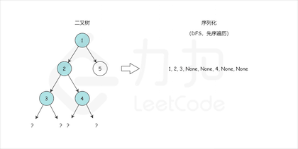 我们来模仿一下力扣的记法。 比如:[1,2,3,null,null,4,5](本质上是 BFS 层次遍历),对应的树如下: