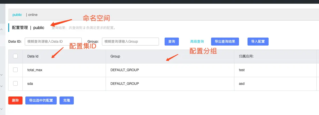 - 命名空间(namespace):和注册中心一样,命名空间属于Nacos顶层的结构,用于进行租户级别的隔离,我们最常用的就是不同环境比如测试环境,线上环境进行隔离。