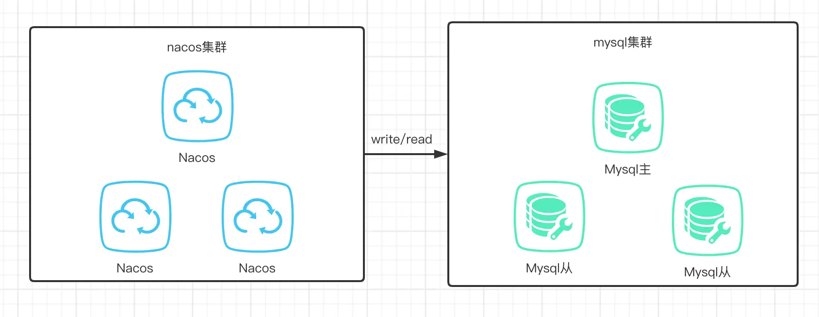 nacos最开始提供的就是mysql的方式,所有机器都可以进行读写,没有主备之分,如下图所示: