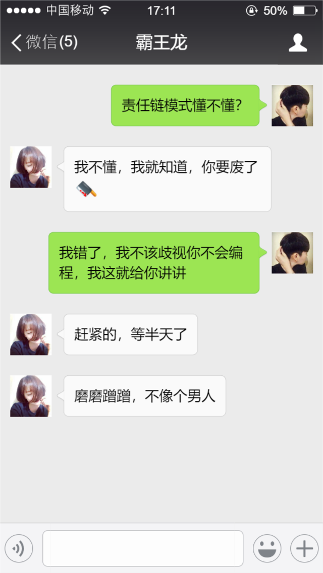 原来生宝宝如此简单,哈哈,一个责任链设计模式搞定,如果你也是负责任的男人,不会责任链设计模式好意思吗?