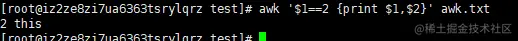 打印分割后第一个元素等于2的行的第一和第二个元素