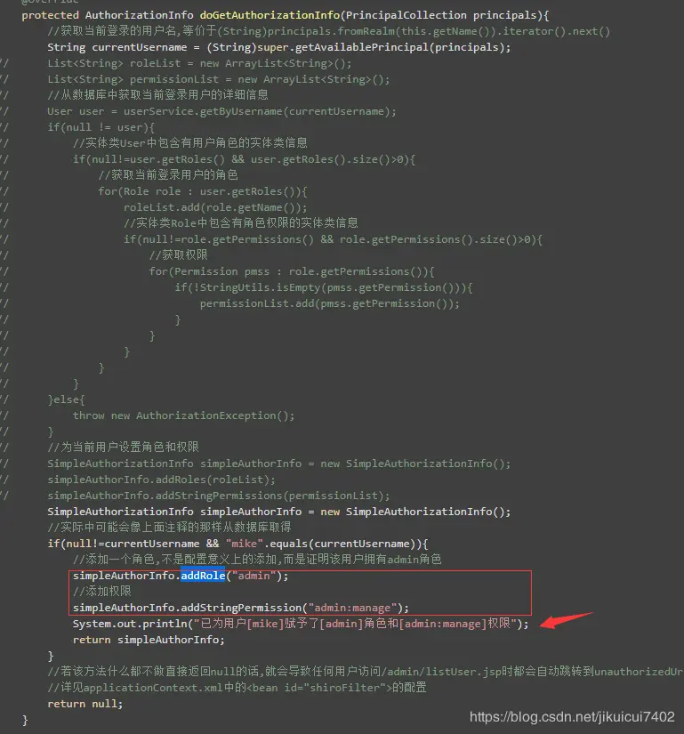验**证成功后会进入当前realm的 doGetAuthorizationInfo方法进行授权**