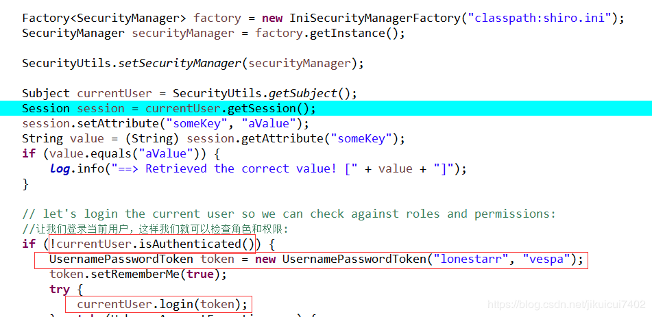 2.测试当前的用户是否已被认证,即是否已经登录,调用subject的isAuthenticated()