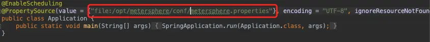 项目使用的是 Springboot,我们查看一下项目的 backend/src/main/java/io.metersphere/Application.java 可以看到,在启动时会去加载一个配置文件。
