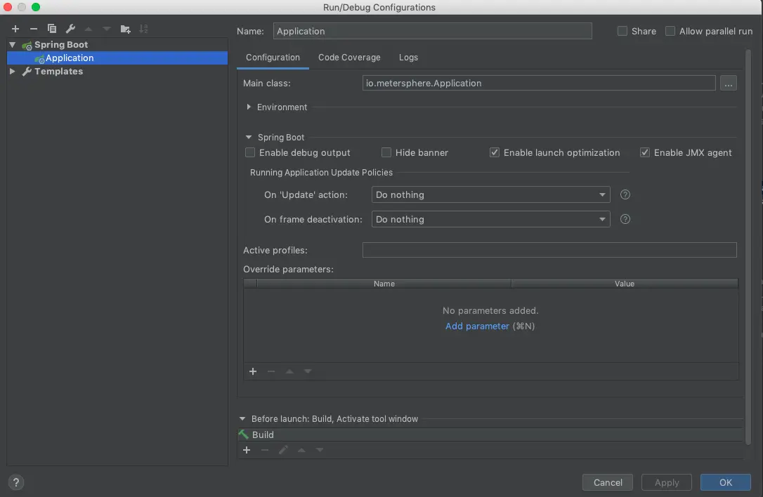 在其中添加 Spring Boot 启动项,直接启动 Spring Boot 项目即可