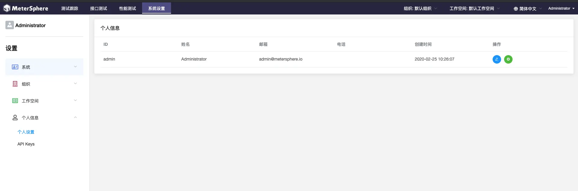默认的用户名: admin 密码: metersphere