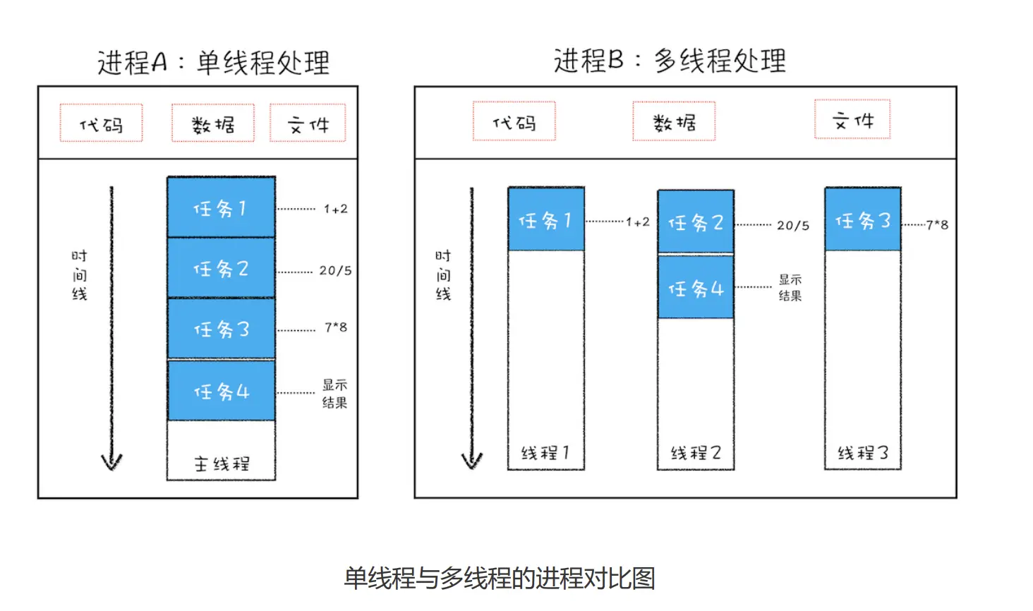 线程是依附于进程的,而进程中使用多线程并行处理能提升运算效率。