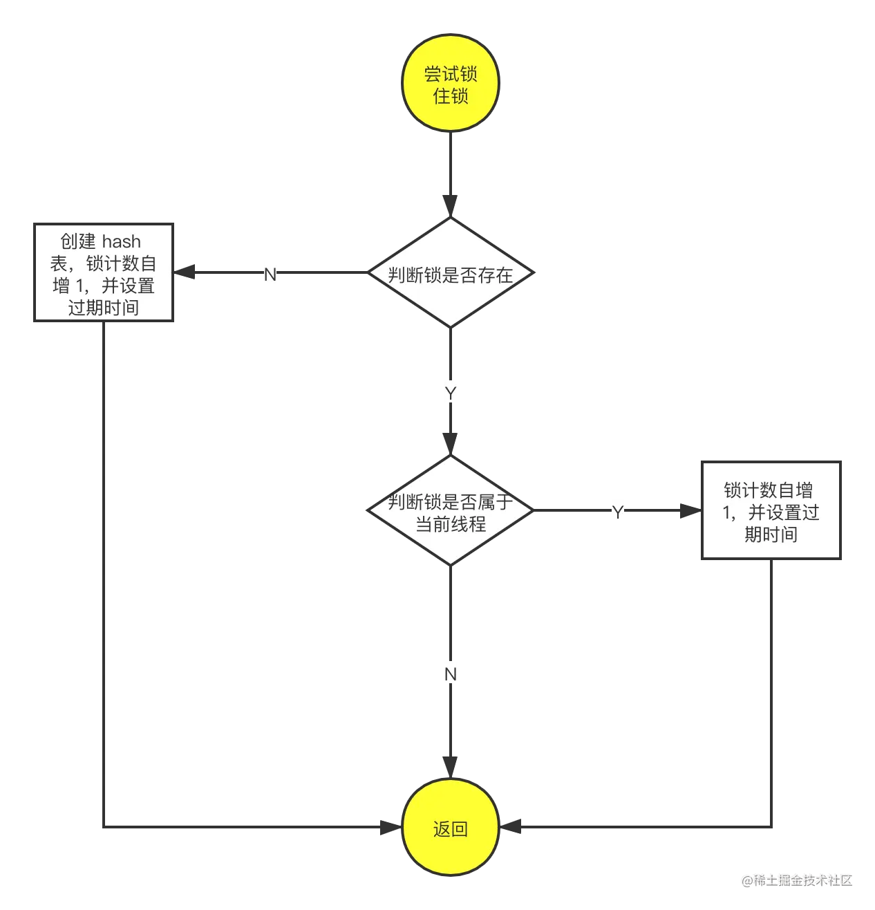 * 锁不存在,使用 hincrby 创建新 hash 表以及给锁计数自增 1,并设置过期时间
