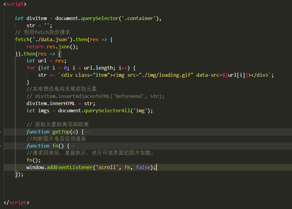 - 数据请求后直接执行 判断图片是否在可视 界面 ;执行fn();