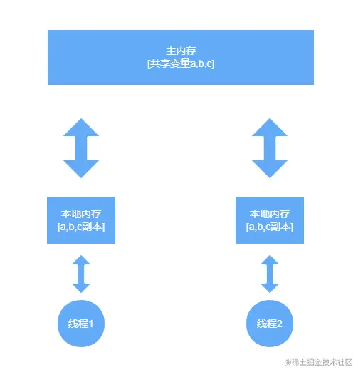 - 每个线程都有一个私有的本地内存,本地内存中存储了该线程使用的共享变量的副本