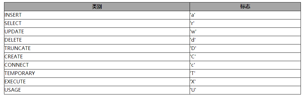 #select relname,relacl from pg_class where relname = 'mytbl1';