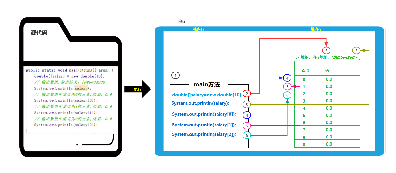// 输出数组中索引为0的元素,double数组中数据默认值是0.0