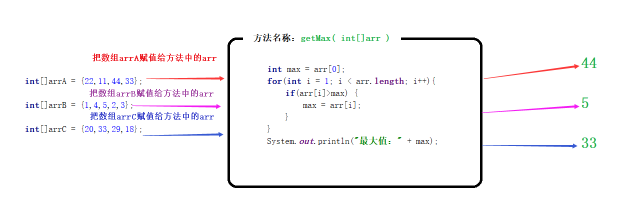 此时,我们需要调用完方法后,得到结果,这个结果不是输出,而是用来和其他最大值相加。