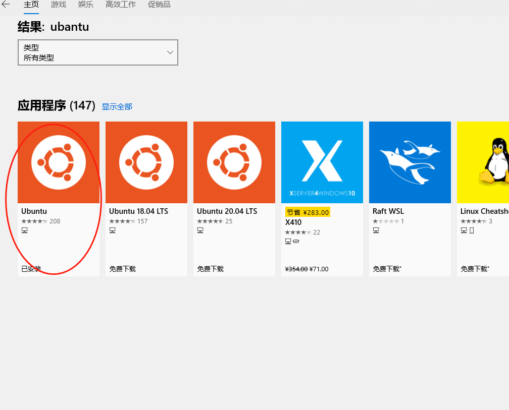 1.打开微软商店搜索ubantu