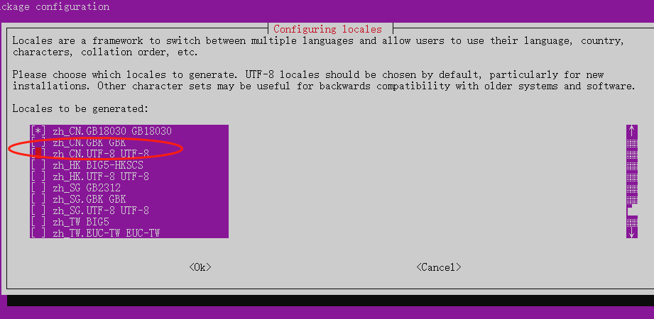 sudo dpkg-reconfigure locales查找并选择zh_cn.UTF-8(空格选择 回车确认 可以多选)
