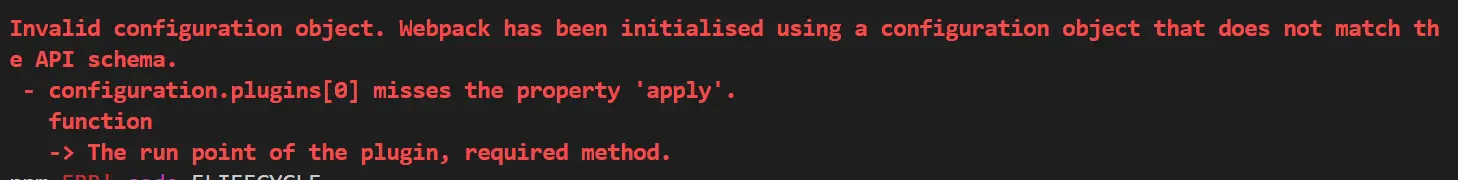 从实现的角度来说,webpack plugin就是一个有apply方法的javascrit对象。跟react组件必须实现render方法一样,这个javascript对象必须实现apply方法。不实现的话,那么webpack是会报错的: