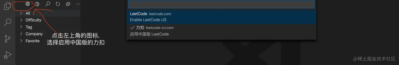 - 点击左上角的圆形网格图标,然后弹出框选择力扣中文版