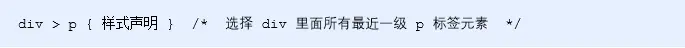 上述语法表示选择元素1 里面的所有直接后代(子元素) 元素2。 -