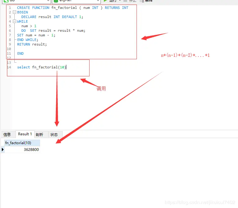 之前,我们列举不少mysql自带的函数,但是有些时候自带函数并不能很好满足我们的需求,此时就需要自定义存储函数了,存储函数与存储过程有些类似,简单来说就是封装一段sql代码,完成一种特定的功能,并返回结果。其语法如下: