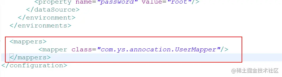 <mapper class="com.ys.annocation.UserMapper"/>