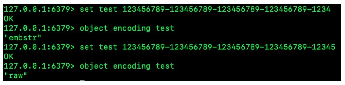 通过在redis-cli中实验,可以发现当字符串大于44字节时确实从embstr变为raw了