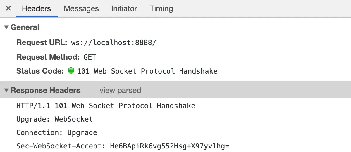 通过观察以上的输出信息,我们的 WebSocket 服务器已经可以成功解析客户端发送包含普通文本的数据帧,下一步我们来实现消息响应的功能。