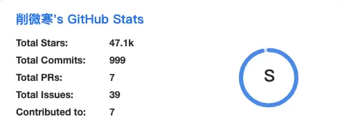 30、github-readme-stats:在你的 README 中展示动态生成的 GitHub 统计信息。使用简单、样式多样,使用方法: