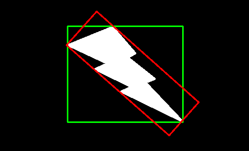 两者的区别如上图,绿线代表的是外接正矩形,红线代表的是外接最小矩形,代码如下: