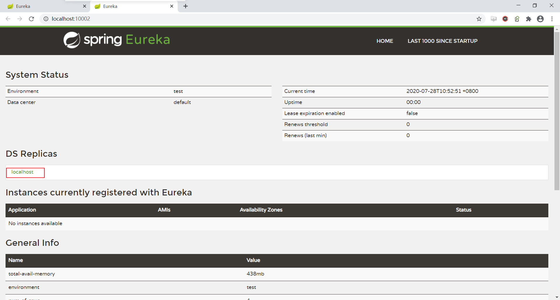spring cloud 组件常见异常处理 li_chunsheng 2020-07-28 95 阅读1分钟 eureka注册中心异常 当搭建了eureka集群 这个位置显示的不是集群的hostname而是localhost原因如下: 错误 正确